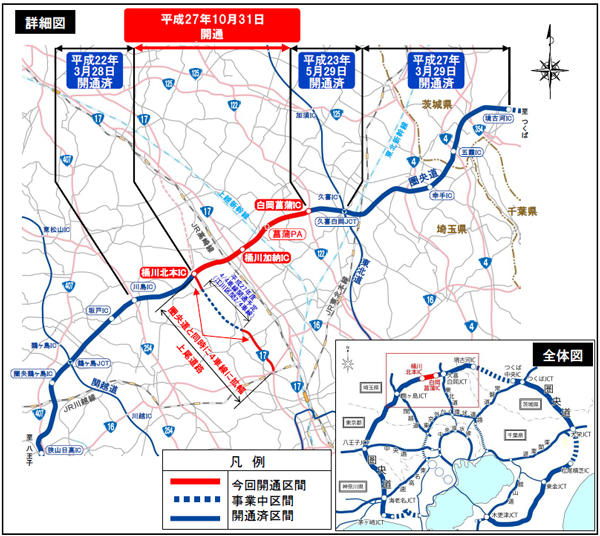 2015年10月31日(土) 圏央道 桶川北本IC 〜 白岡菖蒲IC間が開通しました。